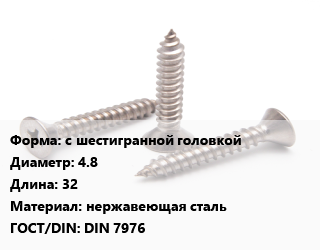 Саморез с шестигранной головкой D=4.8 L=32 нержавеющая сталь ГОСТ: DIN 7976