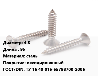 Саморез 4.8 L=95 сталь оксидированный ГОСТ: ТУ 16 40-015-55798700-2006