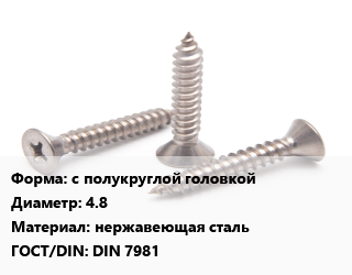 Саморез с полукруглой головкой D=4.8 нержавеющая сталь ГОСТ: DIN 7981