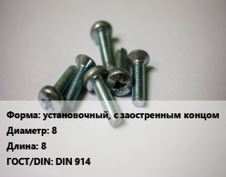 Винт установочный, с заостренным концом 8х8 DIN 914, 12.9, цена за шт, кг цена По запросу где купить, условия доставки в Уральске и Западно-Казахстанской области