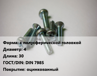 Винт с полусферической головкой 4х30 DIN 7985 оцинкованный