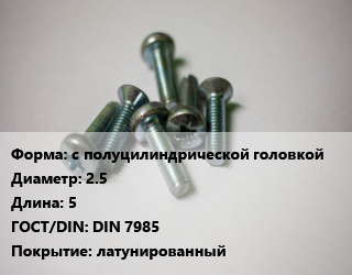 Винт с полуцилиндрической головкой 2.5х5 DIN 7985 латунированный