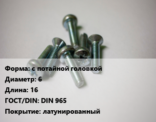 Винт с потайной головкой 6х16 DIN 965 латунированный