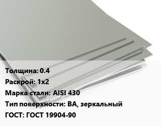 Лист нержавеющий 0.4 1х2 Сталь: AISI 430 Тип:BA, зеркальный ГОСТ 19904-90