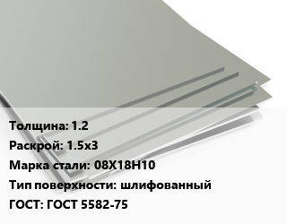 Лист нержавеющий 1.2 1.5х3 Сталь: 08Х18Н10 Тип:шлифованный ГОСТ 5582-75