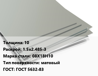 Лист нержавеющий 10 1.5х2.485-3 Сталь: 08Х18Н10 Тип:матовый ГОСТ 5632-83